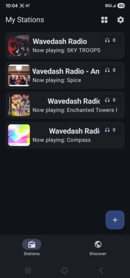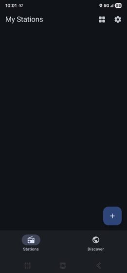 After installing, open up the Azuracast Radio app; within the stations tab – tap on the “+” button: