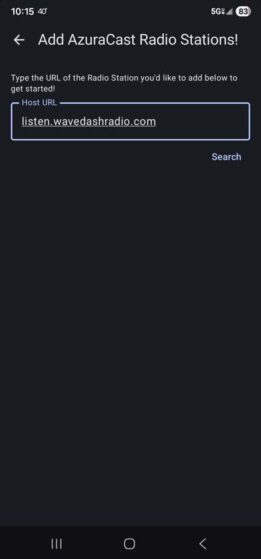 In the Host URL field, type in “listen.wavedashradio.com” (without quotes) and tap Search: