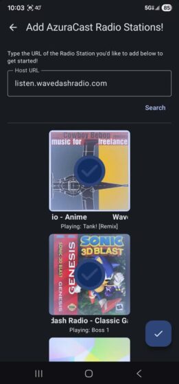 Our stations should then show up; scroll and tap on each of them and tap the “✓” button to add them to your directory: